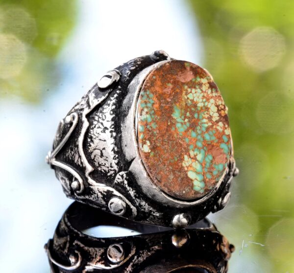Doğal Arizona turkuaz taşı sadece güzel değil, aynı zamanda canlı rengi ve iyileştirici özellikleriyle de bilinmektedir. Bu yüzük, günlük kullanım veya özel etkinlikler için ideal, çok yönlü ve şık bir seçenektir.