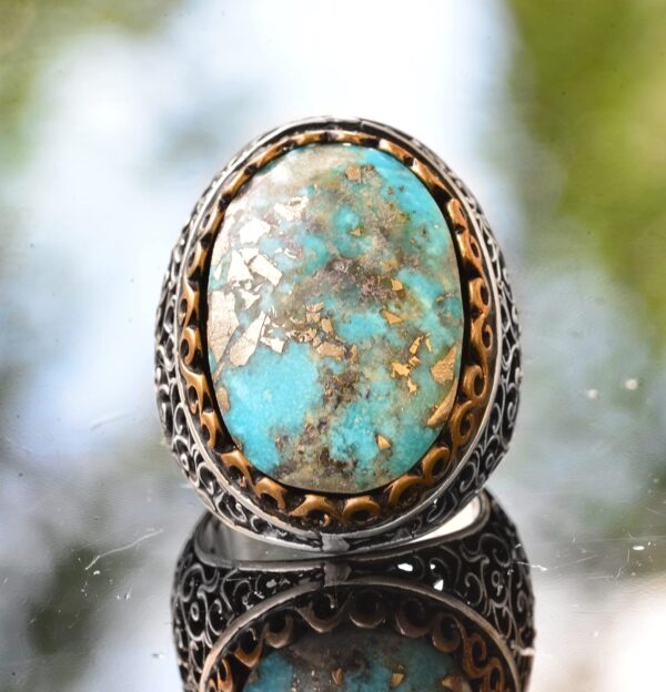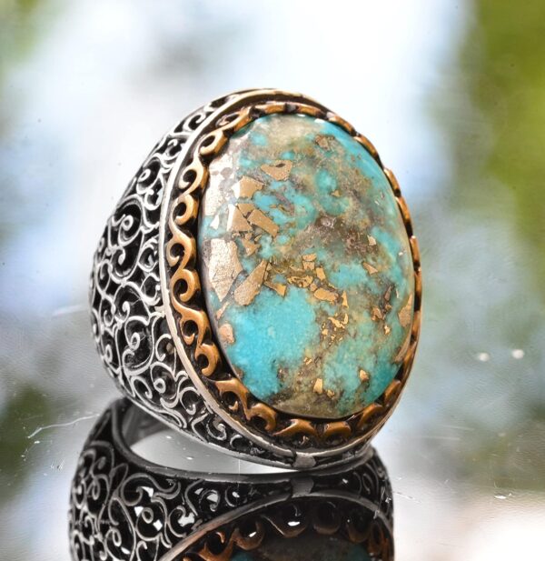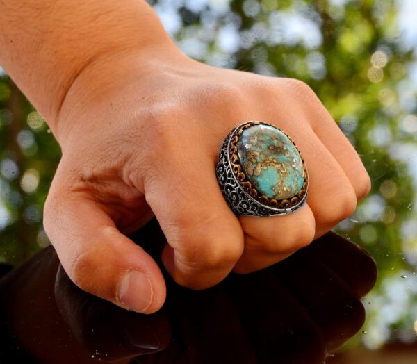925 Ayar Gümüş Gerçek Arizona Turkuaz Taşlı Erkek Yüzük – Büyük İfadeli Taşlı Takı