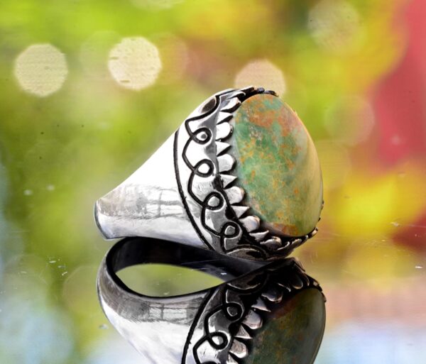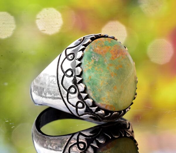 925 Ayar Gümüş Gerçek Doğal Arizona Turkuaz Taşlı Erkek Yüzük – Gerçek Doğum Taşı Takısı