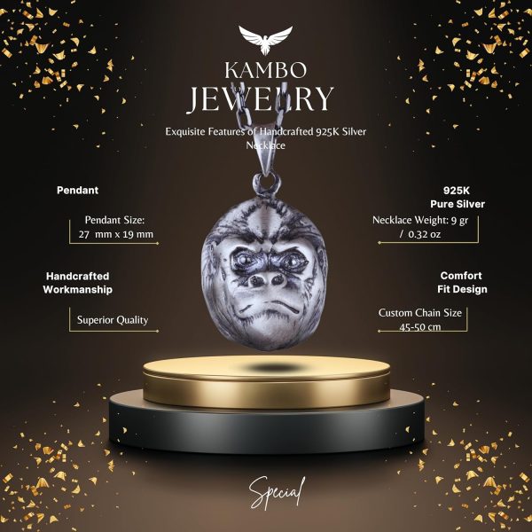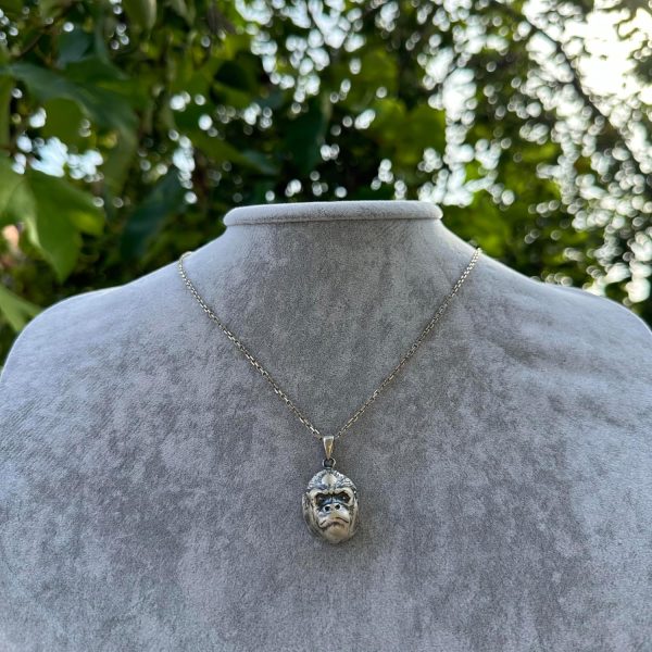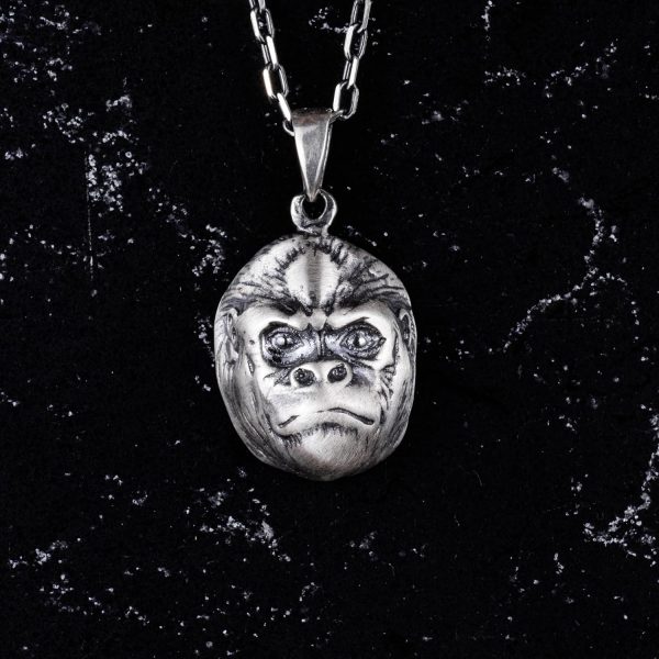 - Bu goril başı kolyesi, dayanıklılık ve ince detaylı bir bitiş sunan yüksek kaliteli 925 ayar gümüşten yapılmıştır.