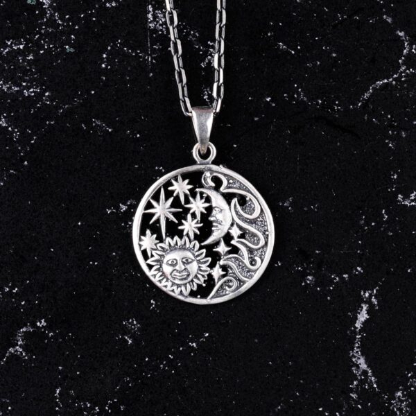 925 Ayar Gümüş Güneş ve Ay Kolye, El Yapımı Göksel Kolye