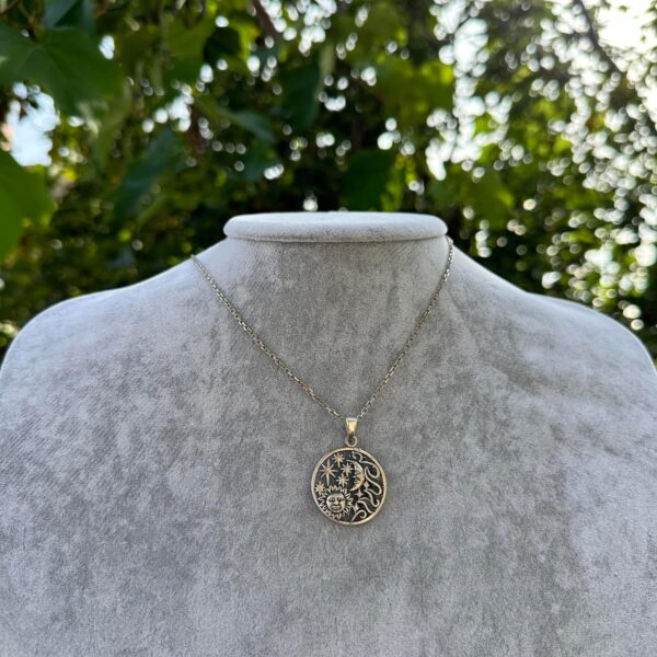 - Güneş, ay ve yıldızların karmaşık tasarımı, bu güzel takıya ruhsal ve sanatsal bir dokunuş katıyor.