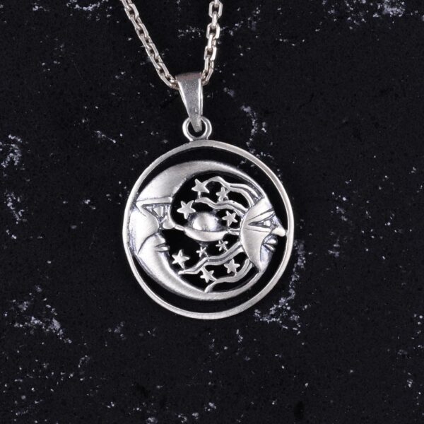 925 Ayar Gümüş Güneş ve Ay Kolye – Gökyüzü Aksesuarı – El Yapımı Takı