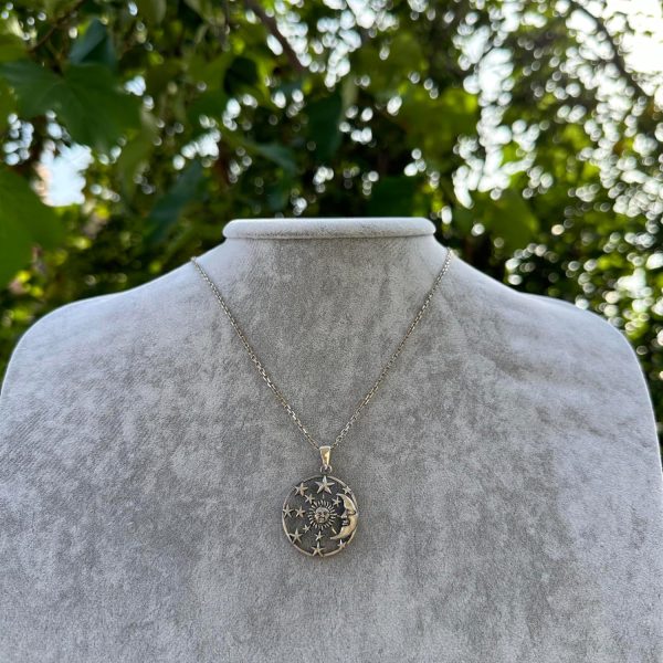 925 Ayar Gümüş Güneş ve Ay Kolye, Gökyüzü Yıldızları Pendantı, El Yapımı Kolye