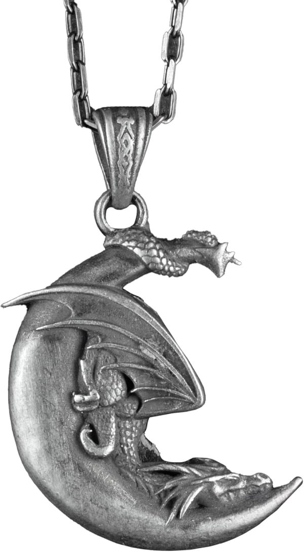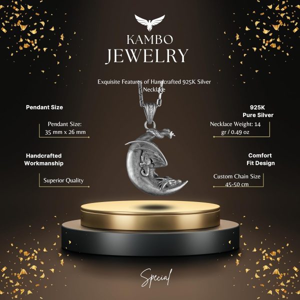 • MİTOLOJİK TASARIM: Detaylı ve büyüleyici bir tasarıma sahip el yapımı ay gümüşü ejderha kolyesi.