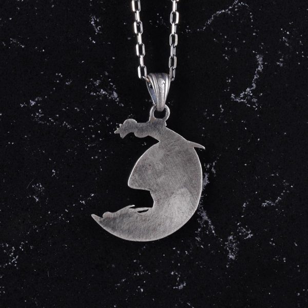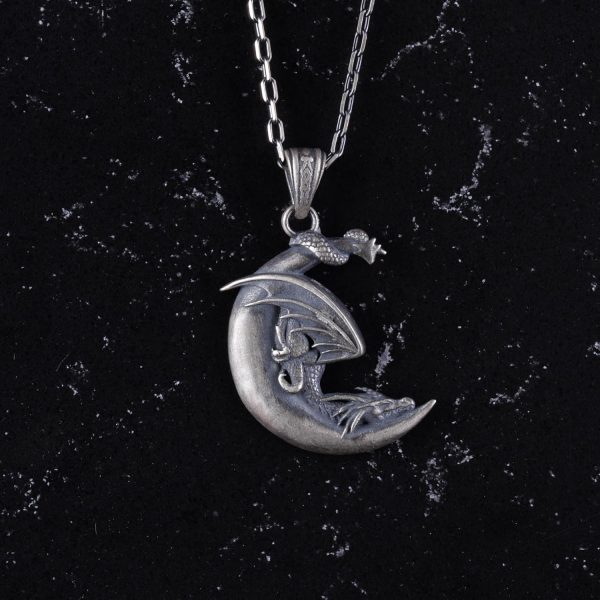 925 Ayar Gümüş Hilal Ay Takı – Gümüş Ay Ejderha Kolye – Efsanevi Takı – Fantastik İlhamlı Tasarım