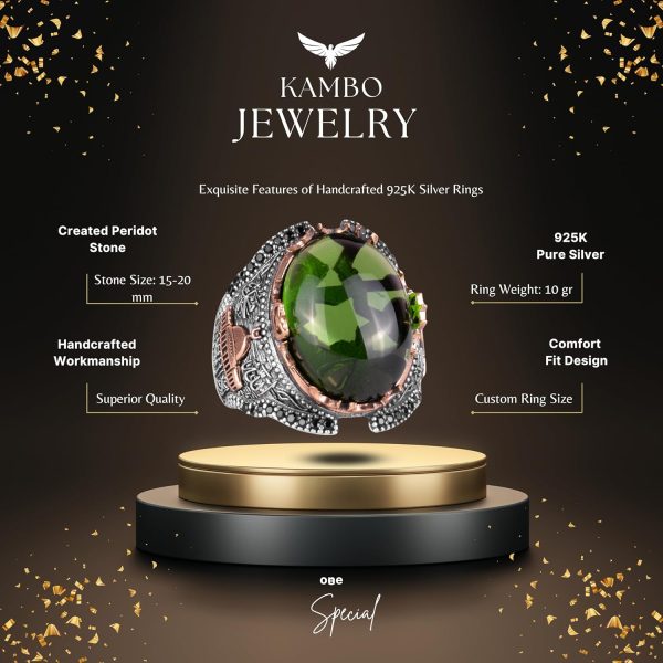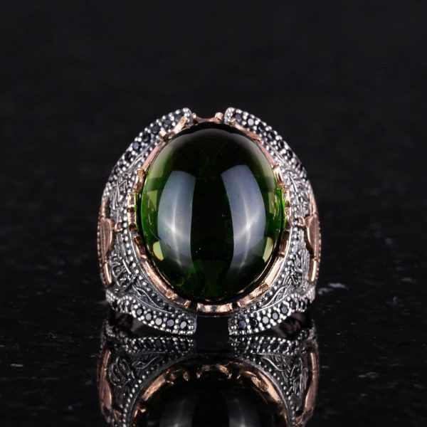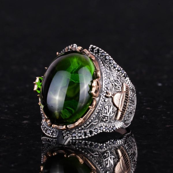 925 Ayar Gümüş İslami Erkek Yüzük, Yapay Peridot Yeşil Taşı Yüzük