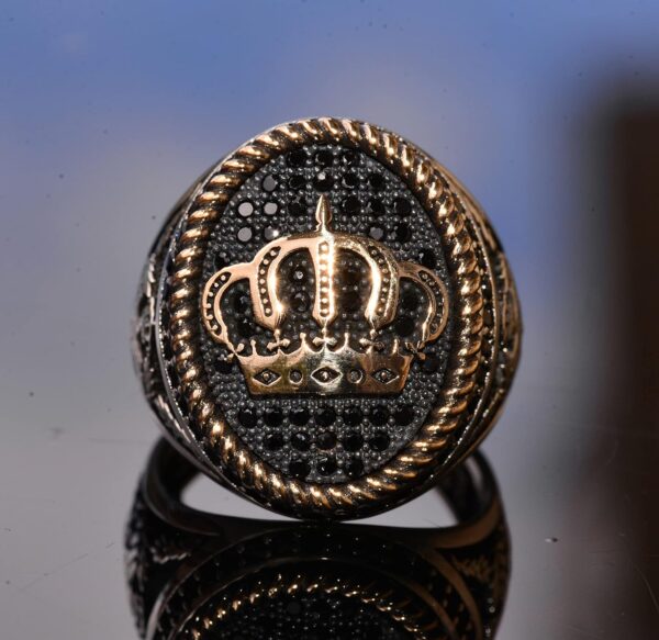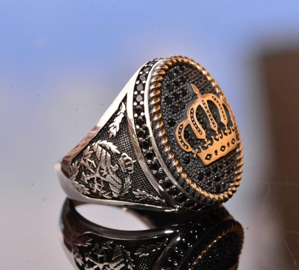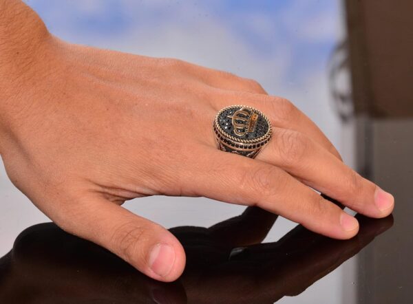 925 Ayar Gümüş Kral Taç Yüzük – Doğal Oniks Taşı – Erkekler için Görkemli Takı