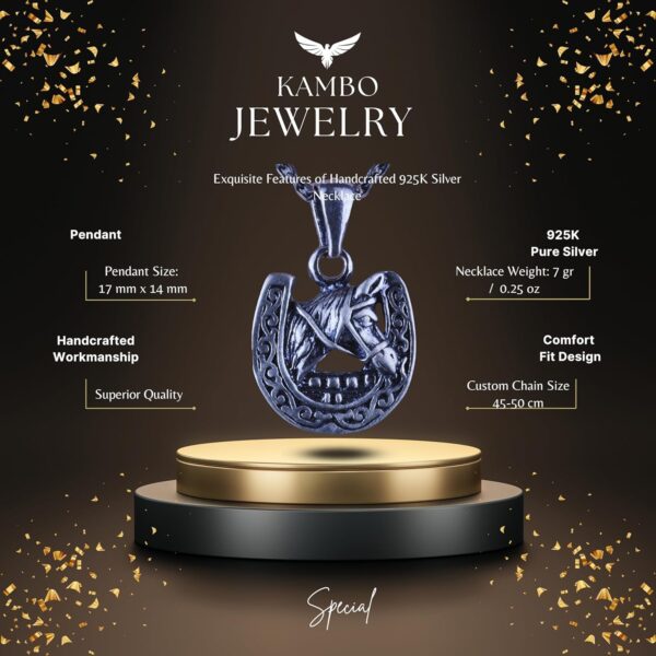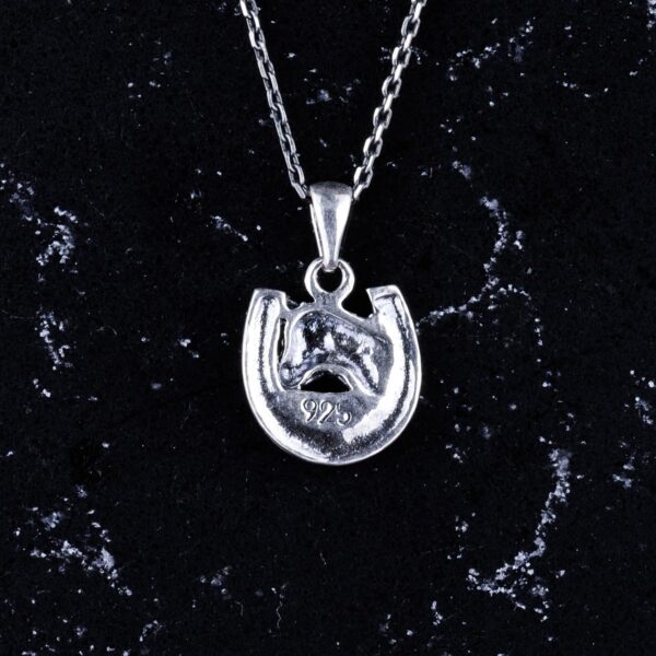 925 Ayar Gümüş El Yapımı Ata Nalı ve At Başı Kolye Süslemesi – Şans ve Gücün Sembolü