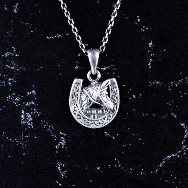 925 Ayar Gümüş Nal ve At Başı Kolye Ucu – El Yapımı Şans ve Güç Sembolü