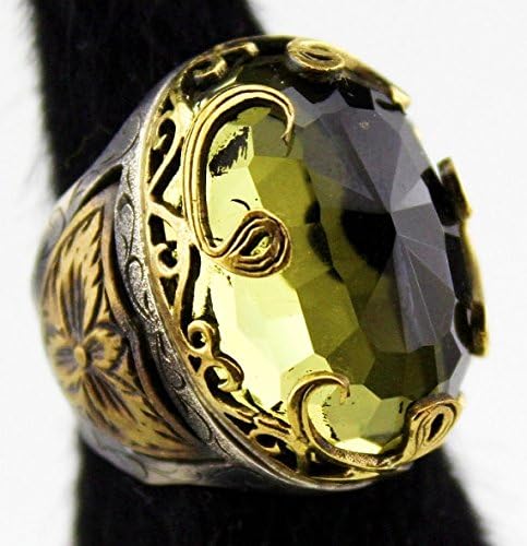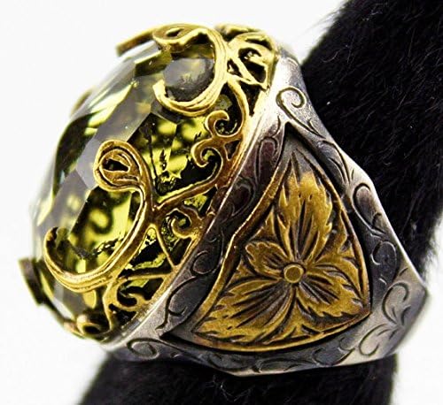 925 Ayar Gümüş Osmanlı İmparatoru Takı VAV Desenli Erkek veya Kadın Yüzük, Yapay Sitrin Taşı