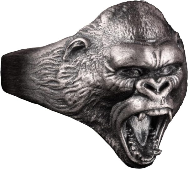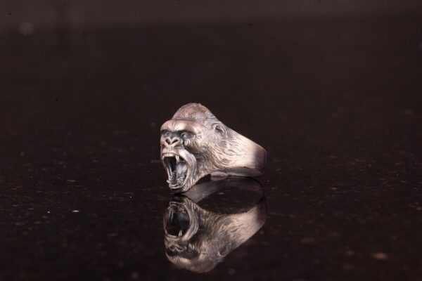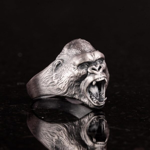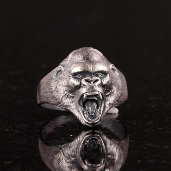 925 Ayar Gümüş Yüzük – 925 Ayar Gümüş Kızgın Goril Baş Yüzüğü – El Yapımı Hayvan Damga Yüzüğü erkekler için