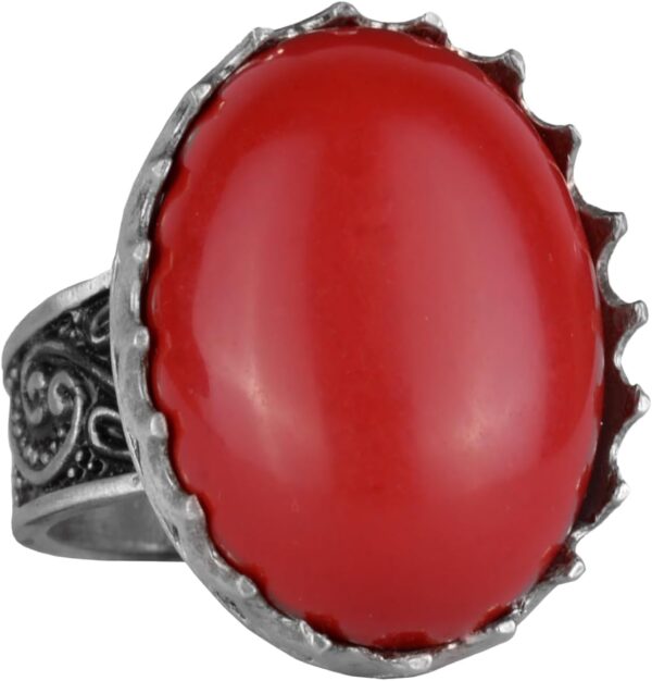 Üretilmiş kırmızı mercan taşı, güç ve koruma ile ilişkilendirilir, bu nedenle bu yüzük sadece bir moda aksesuarı olmanın ötesinde; kendine güven ve cesaret ifadesidir. Büyük ve ayırt edici tasarımı, dikkatleri üzerine çekecek şekilde tasarlanmıştır, bu da onu günlük kullanım ve özel etkinlikler için mükemmel bir seçim haline getirir.