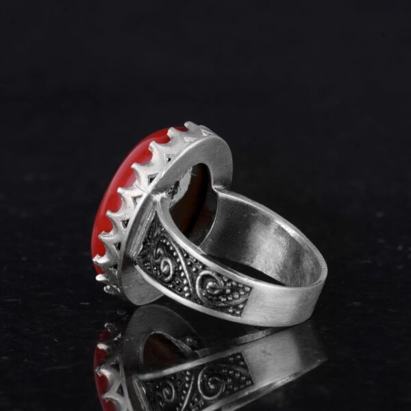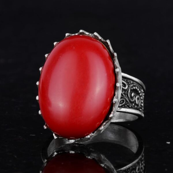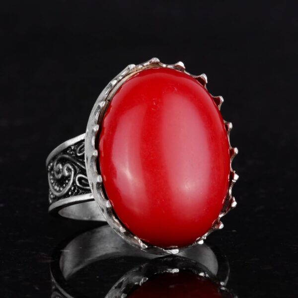925 Ayar Gümüş Yüzük – Büyük Yüzük – Yapay Taş Gümüş Yüzük – El Yapımı Yüzük (Yapay kırmızı mercan)