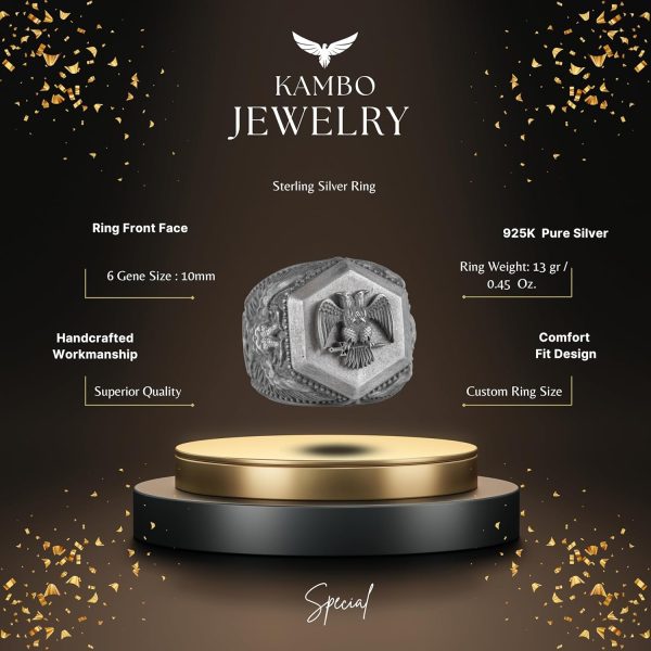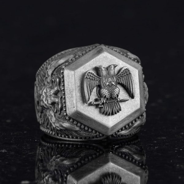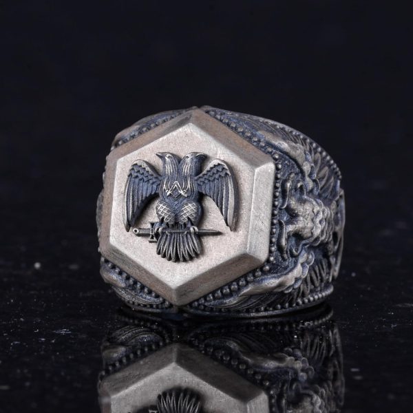 925 Ayar Gümüş Yüzük, Cesur Sembol Yüzük (Çift Başlı Kartal)