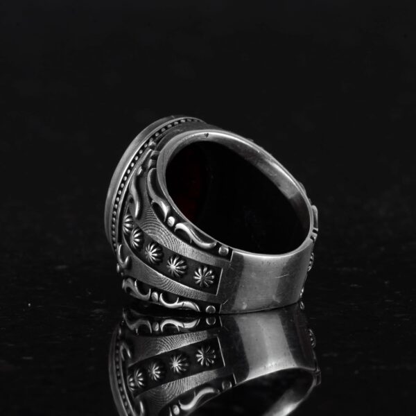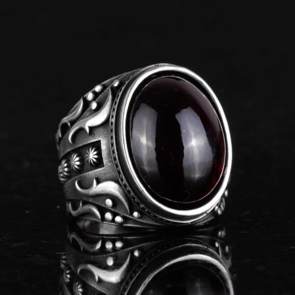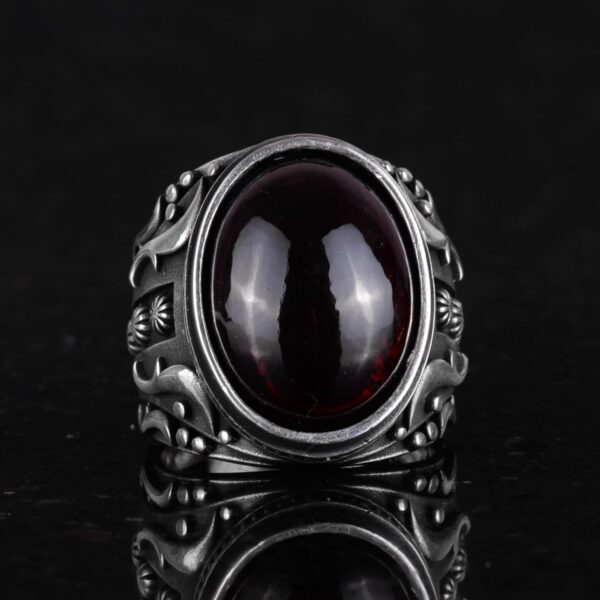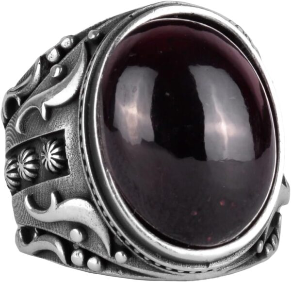 925 Ayar Gümüş Yüzük, Doğal Granat Taşı Yüzük Erkekler İçin, Özel Yüzük