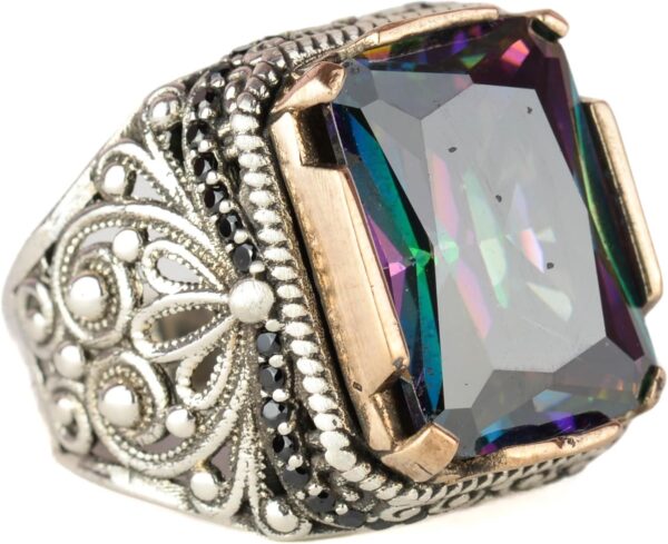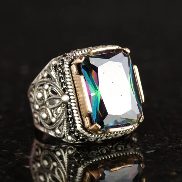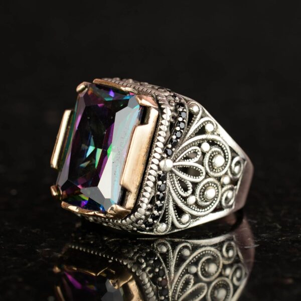 925 Ayar Gümüş Yüzük, Doğal Olmayan Mystic Topaz Taşlı Gümüş Yüzük, Mystic Topaz Gümüş Erkek Yüzük (Özelleştirilebilir)