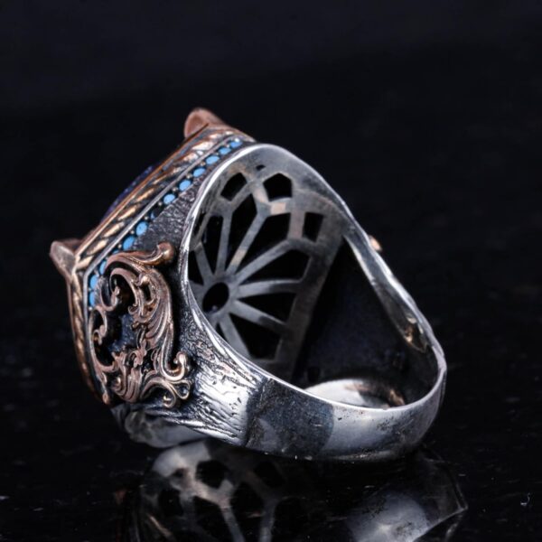 Bu muhteşem 925 ayar gümüş yüzük, doğal safir taş ile süslenmiş olup, zarafet ve ustalığın mükemmel bir karışımını sunar. Vintage esinlenmeli tasarımı, zamansız bir güzellik katmakta ve bu erkek yüzüğü, herhangi bir takı koleksiyonunda öne çıkan bir parça haline getirmektedir. Derin mavi safir, lüks görünümüyle bu el yapımı yüzüğün cesur ve sofistike görünümünü artırmaktadır.