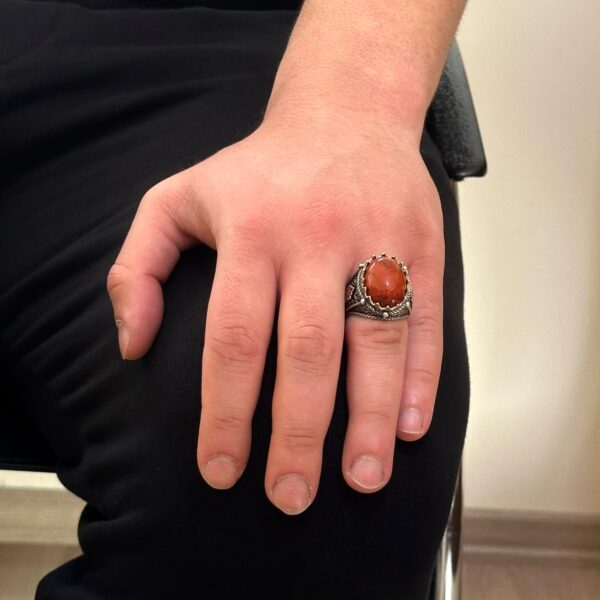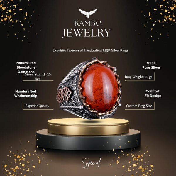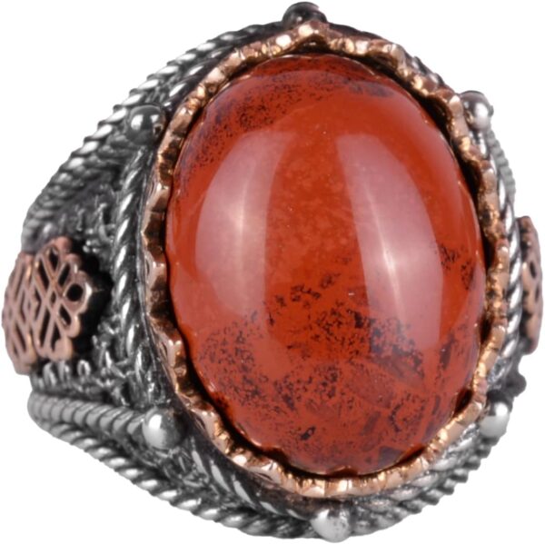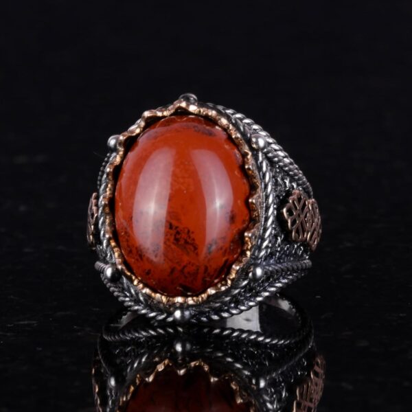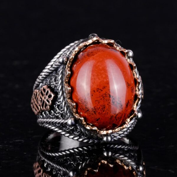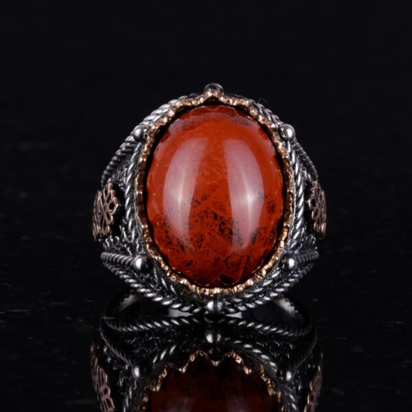925 Ayar Gümüş Yüzük, El Yapımı Doğal Kırmızı Kan Taşı Yüzük