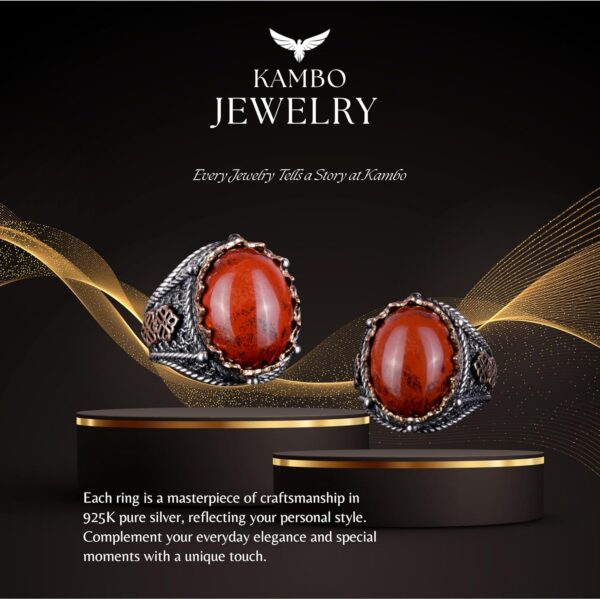 KAMBO Özel Koleksiyonu, doğal taşlarla zenginleştirilmiş 925K Saf Sterling Gümüş Erkek Yüzüklerimizin eşsiz zarafetini keşfetmeye davet ediyor. Koleksiyonumuzdaki her taş, kendine has güzelliği ve sunduğu benzersiz enerji ile seçilmiştir. El yapımı yüzüklerimiz, lüks ve kişisel ifadenin özünü yansıtan ince işçiliğin bir kanıtıdır. Yüzüğünüzü tam boyutunuza ve tercihinize göre özelleştirme seçeneği ile KAMBO, ince takı dünyasına samimi bir yolculuk sunar. Her biri kalite, memnuniyet ve zamansız zarafet vaadi taşıyan olağanüstü taş yüzüklerimizle doğanın ve sanatın uyumunu deneyimleyin. Yüzük Ağırlığı: 19gr Taş Boyutu: 20-15mm