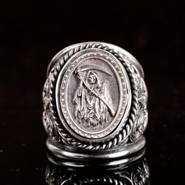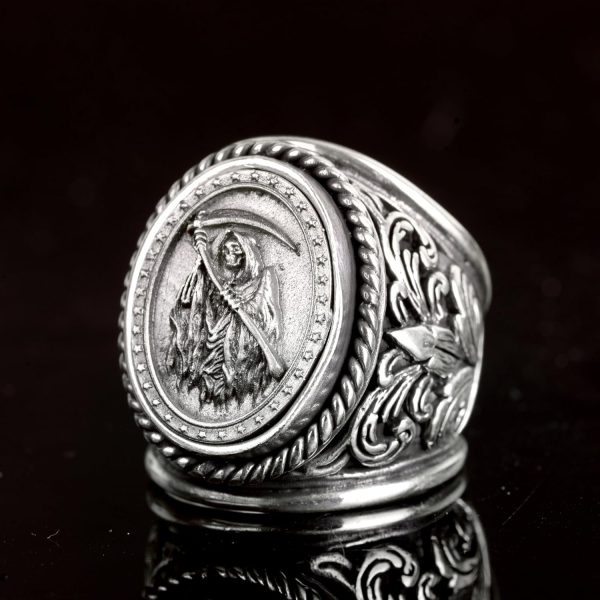 925 Ayar Gümüş Yüzük, El Yapımı Grim Reaper Yüzüğü Erkekler İçin, Grim Reaper Yüzüğü. Ağırlık: 18.39gr