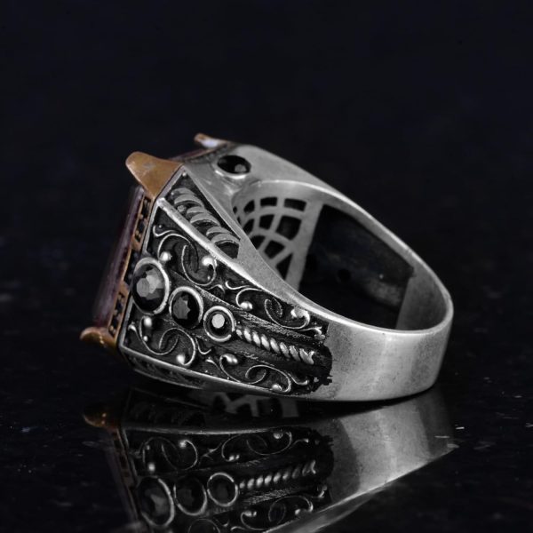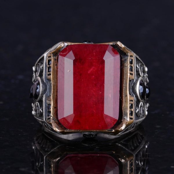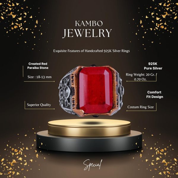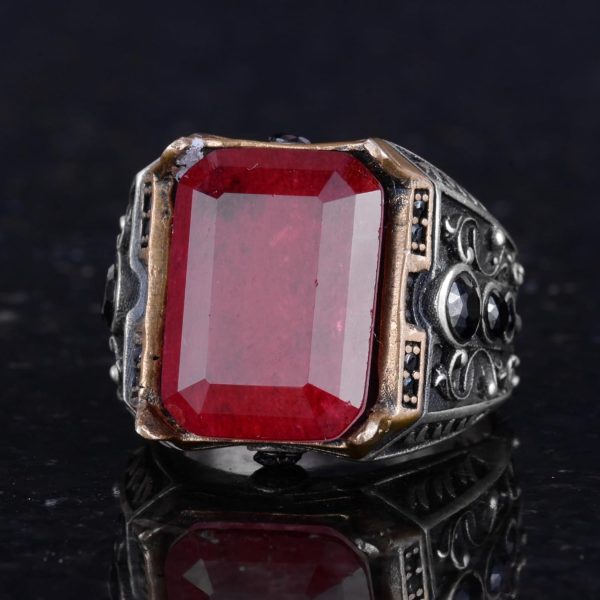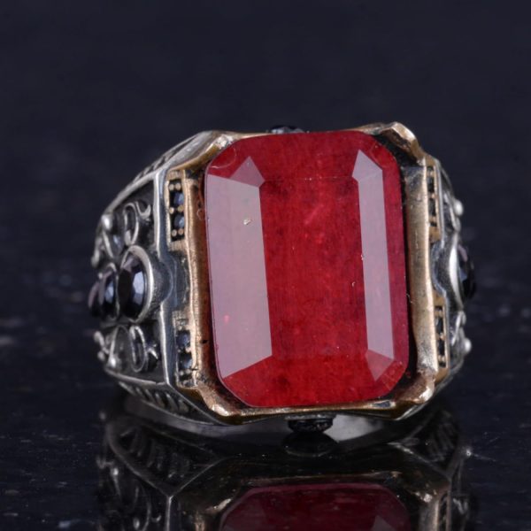 925 Ayar Gümüş Yüzük – Erkekler İçin Oluşturulmuş Taş Yüzük – El Yapımı Yüzük (Oluşturulmuş kırmızı paraiba)