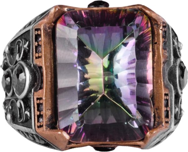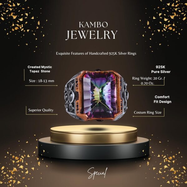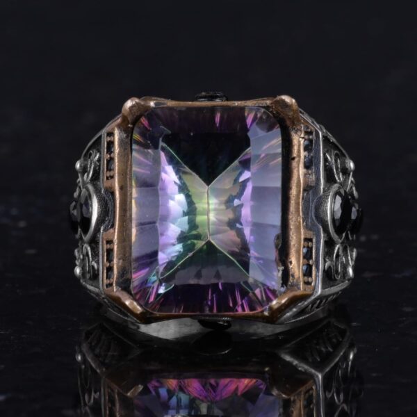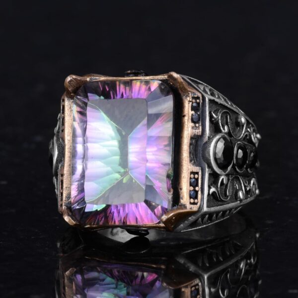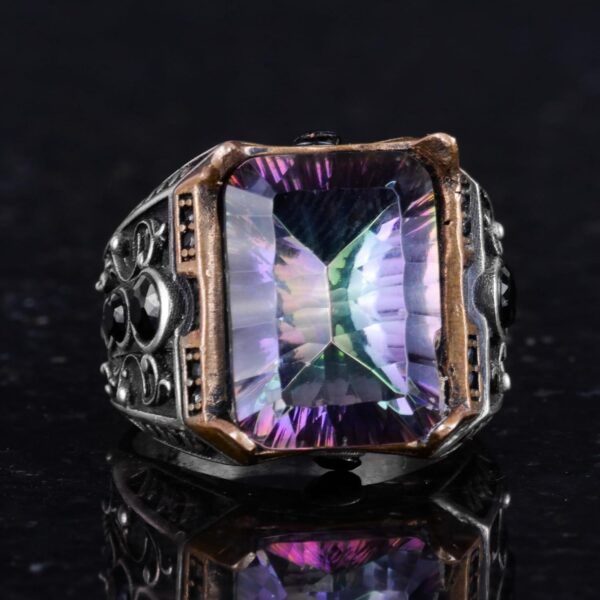 El Yapımı Erkekler İçin 925 Ayar Gümüş Yüzük – Oluşturulmuş Mystic Topaz Taşı ile Eşsiz Tasarım