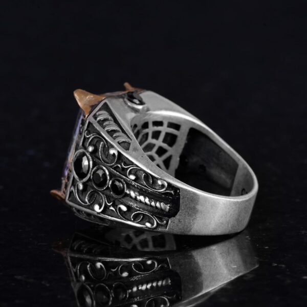925 Ayar Gümüş Yüzük – Erkekler İçin Oluşturulmuş Taş Yüzük – El Yapımı Yüzük (Oluşturulmuş mistik topaz)