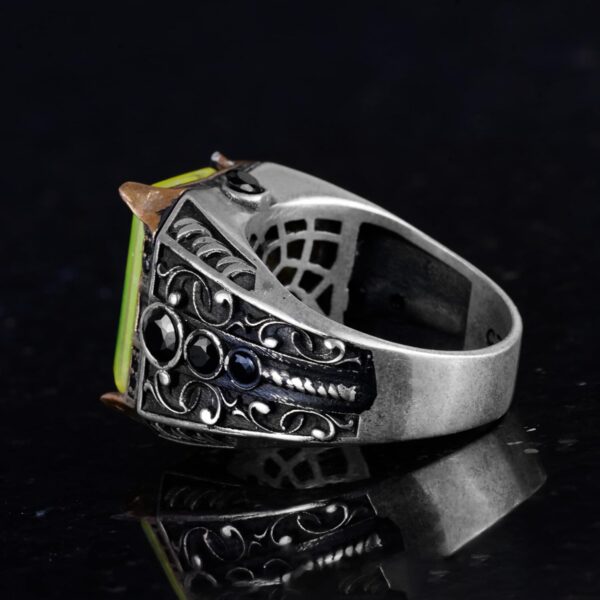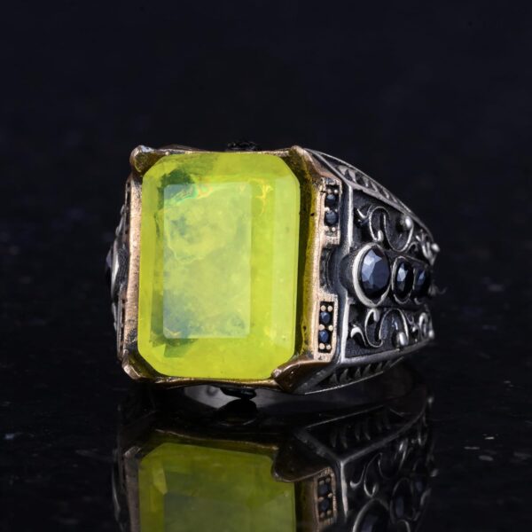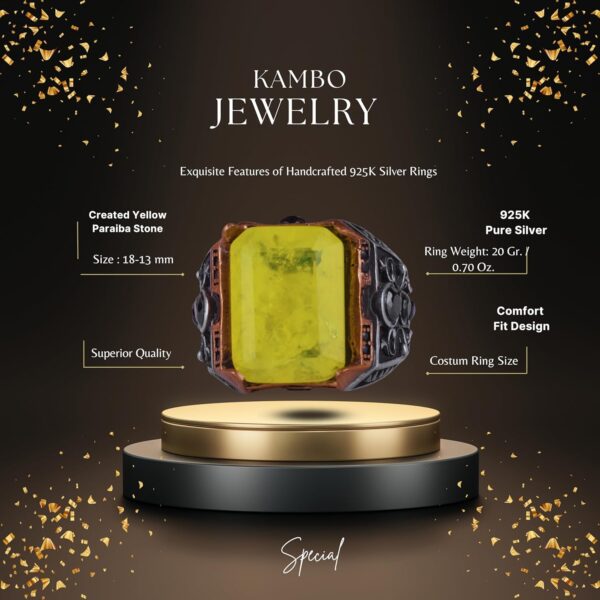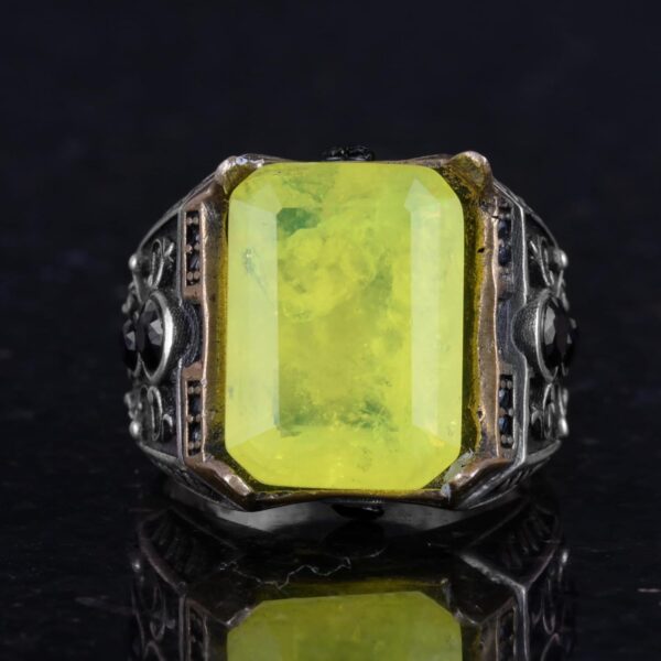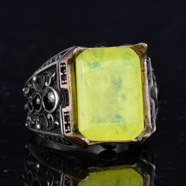 925 Ayar Gümüş Yüzük – Erkekler İçin Oluşturulmuş Taş Yüzük – El Yapımı Yüzük (Oluşturulmuş sarı paraiba)