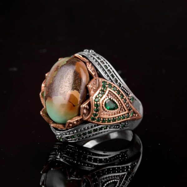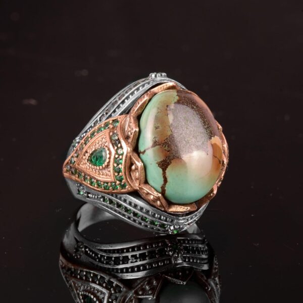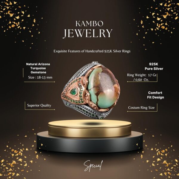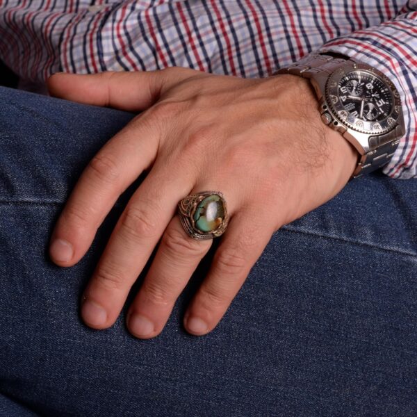 925 Ayar Gümüş Erkek Yüzük, Doğal Arizona Turkuaz Taşı Yüzük, Eşsiz El Yapımı Gümüş Yüzük Ağırlık: 17.35 gr