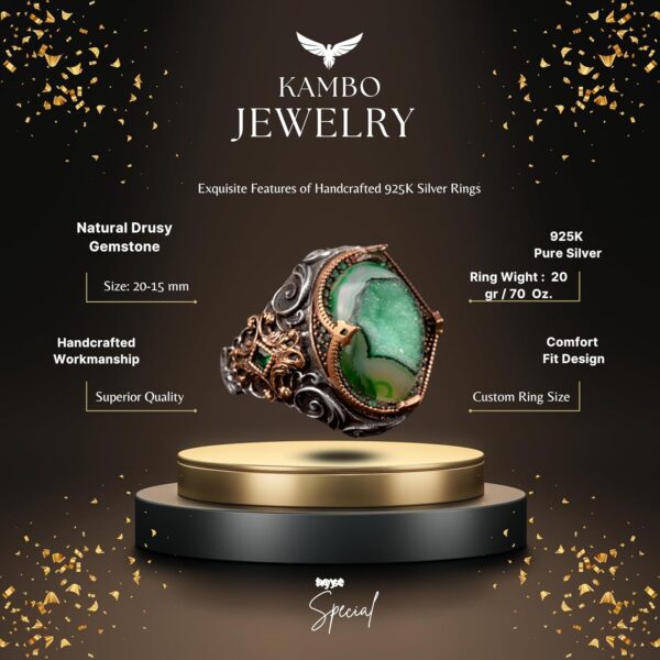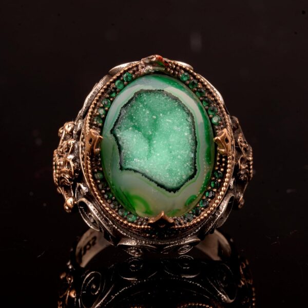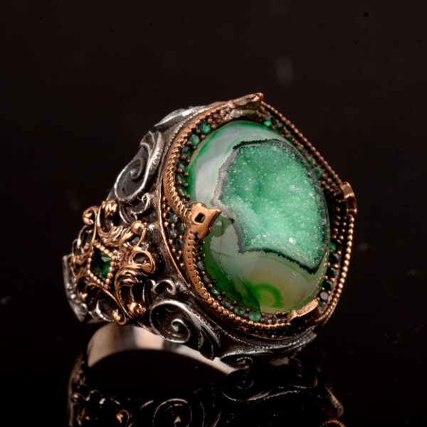 925 Ayar Gümüş Yüzük, Gerçek Doğal Drusy Kristal Kuvars Taşı Yüzük