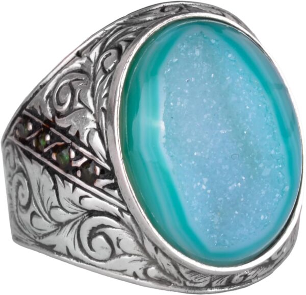 Gerçek Doğal Druzy Kuvars Taşı Yüzük, Büyük Yüzük, 925 Ayar Gümüş Yüzük Ağırlık: 15 gr Taş Boyutu: 15-20 mm