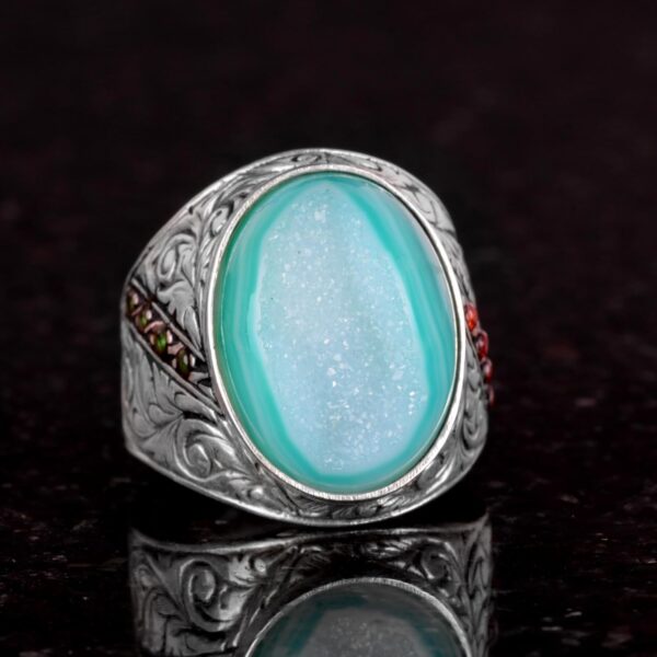 925 Ayar Gümüş Yüzük, Gerçek Doğal Druzy Kuvars Taşı Yüzük, Büyük Yüzük