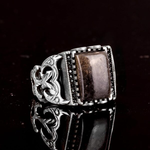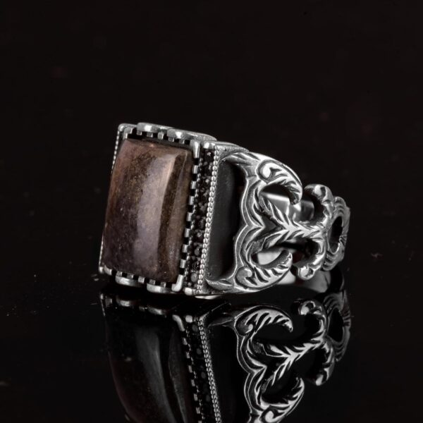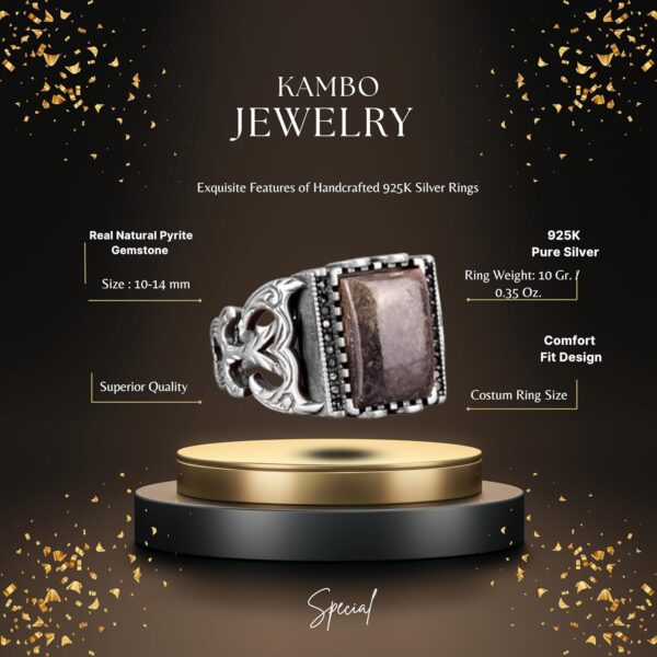 925K Gümüş Yüzük, Gerçek Doğal Pirit Taşı Yüzüğü, Kare Şekilli Pirit Yüzük Ağırlık: 11.61gr