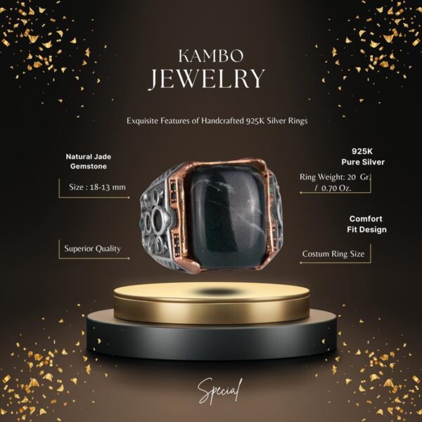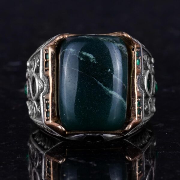 Bu el yapımı yüzük, 925 Ayar Gümüşten yapılmış olup, derin yeşil rengi ve sakinliği ile tanınan gerçek doğal Jade taşını içermektedir. Yüzüğün tasarımı, Jade taşının doğal zarafetini vurgulamak için dikkatlice hazırlanmıştır ve bu sayede herhangi bir mücevher koleksiyonuna göz alıcı bir katkı sağlar.