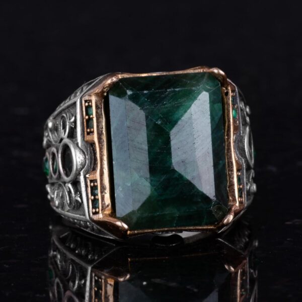 925 Ayar Gümüş Yüzük – Gerçek Doğal Taş Yüzük – El Yapımı Yüzük (Zümrüt)