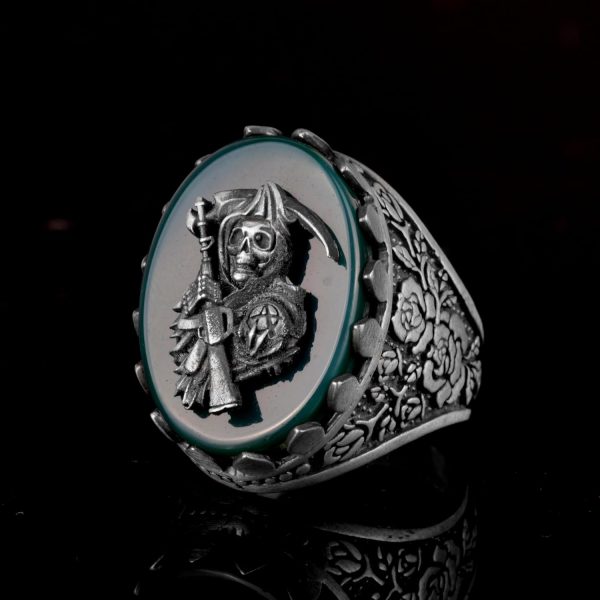 925 Ayar Gümüş Yüzük, Gerçek Doğal Taş Yüzük, Grim Reaper Yüzüğü