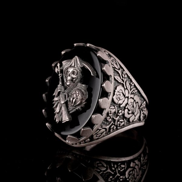 925 Ayar Gümüş Yüzük, Doğal Taş Yüzük, Grim Reaper Yüzüğü Ağırlık: 16.39gr Taş Boyutu: 25-18mm