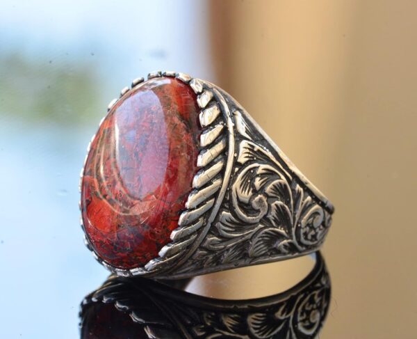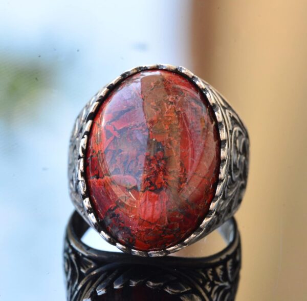 925 Ayar Gümüş Yüzük – Gerçek Doğal Taş Yüzük – (Kan Taşı)