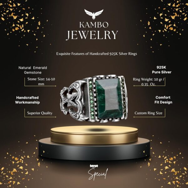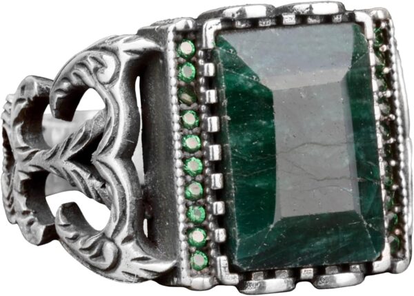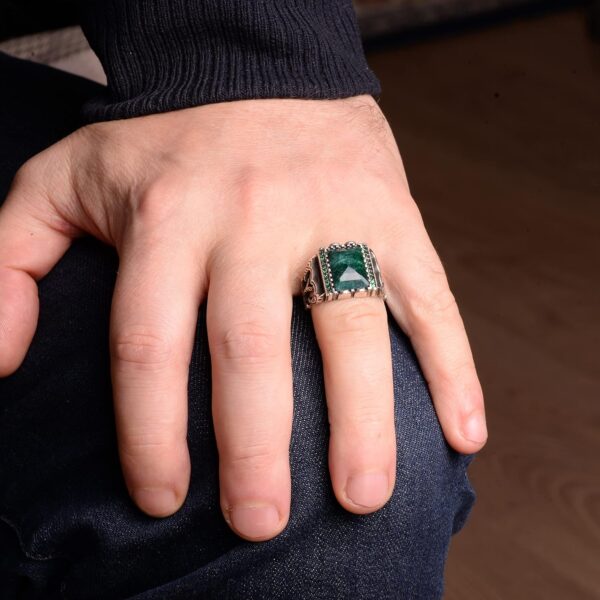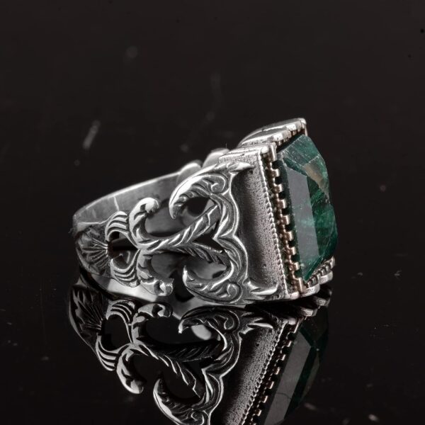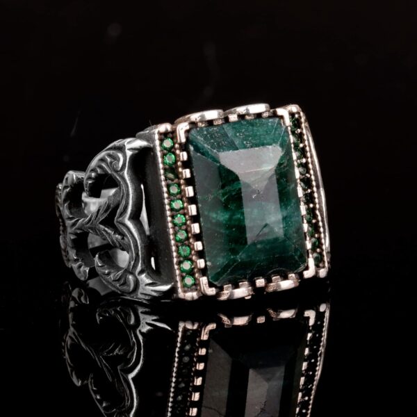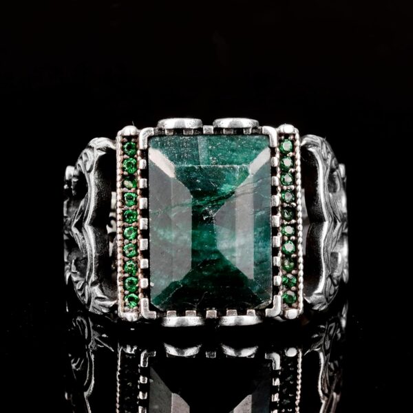 925 Ayar Gümüş Yüzük. Gerçek Doğal Taş Yüzük. (Zümrüt)