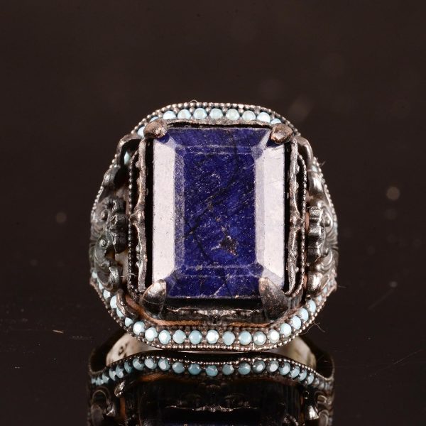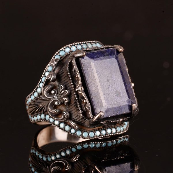 925 Ayar Gümüş Yüzük, Gerçek Safir Doğal Taş Yüzük, El Yapımı Yüzük