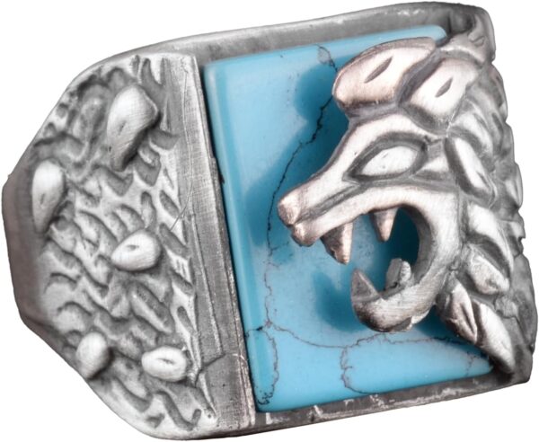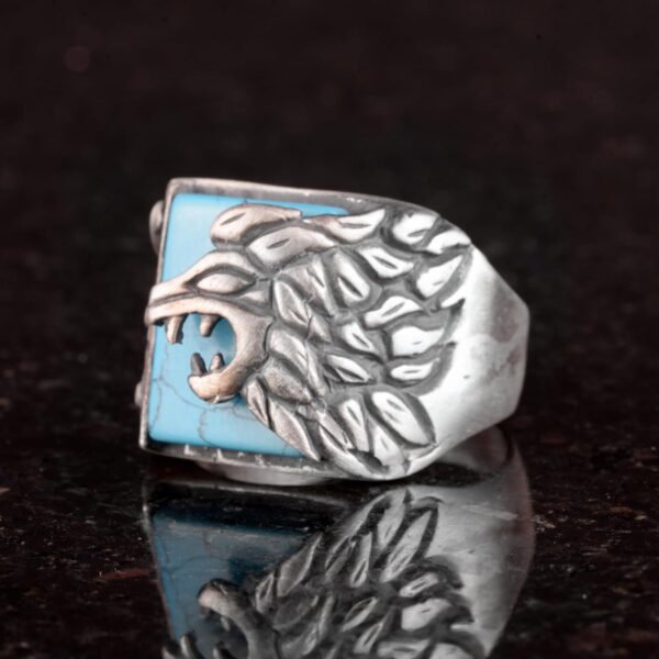 Turkuaz Taşlı 925 Ayar Gümüş Aslan Yüzük