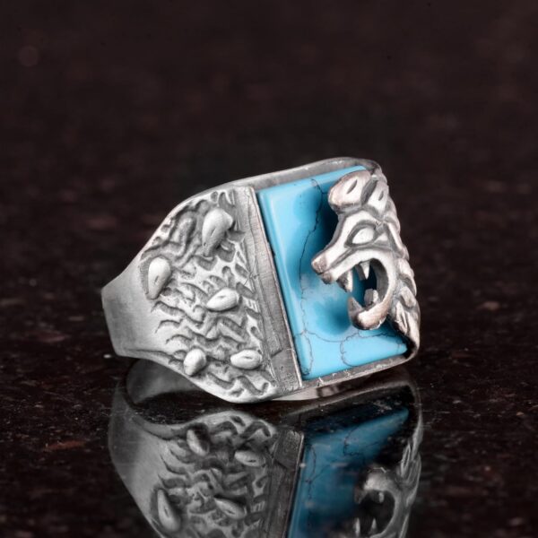 925 Ayar Gümüş Yüzük, Aslan Yüzüğü, Turkuaz Taşı, 925 Ayar Gümüş Aslan Yüzüğü Oluşturulmuş Turkuaz Taşı ile