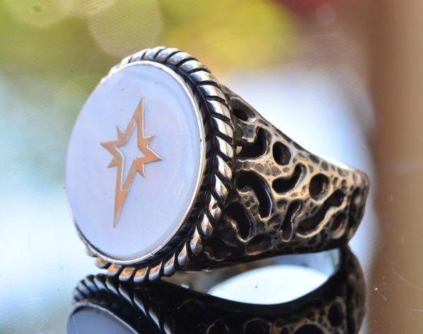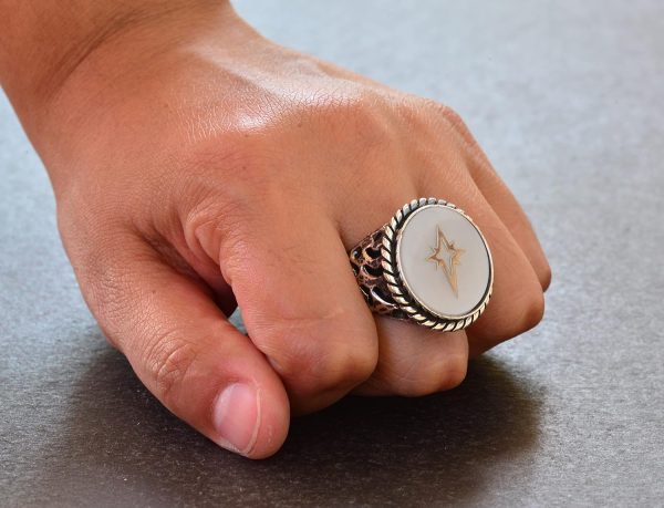 925 Ayar Gümüş Yüzük – İmza Erkek Yüzüğü – Semboller Yüzüğü (Kuzey Yıldızı)