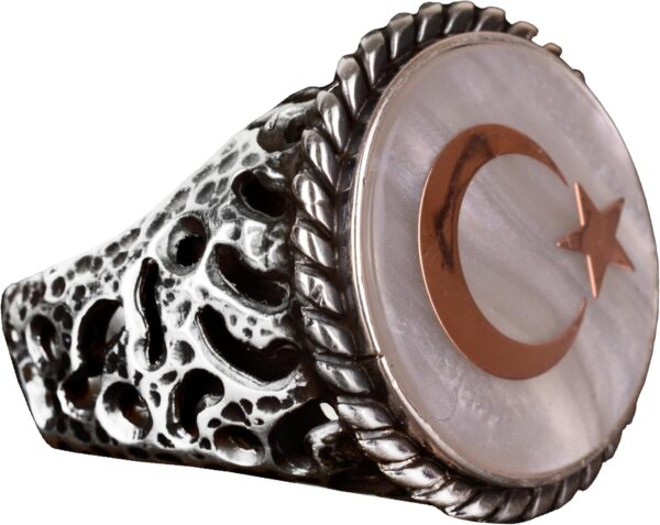 925 Ayar Gümüş Yüzük – İmza Yüzüğü – Semboller Yüzüğü (Yıldız ve Hilal)