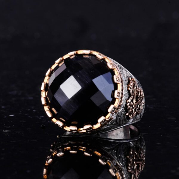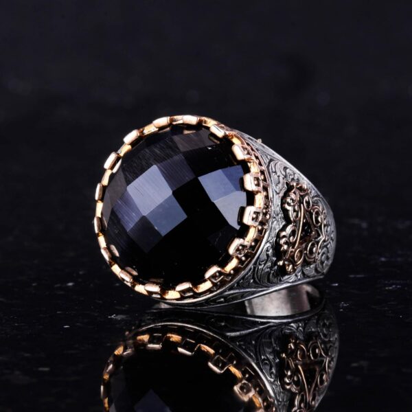 - Zamansız Tasarım: Oniks taşının derin siyah tonu, karmaşık detaylarla tamamlanarak eşsiz ve zarif bir görünüm sunar.