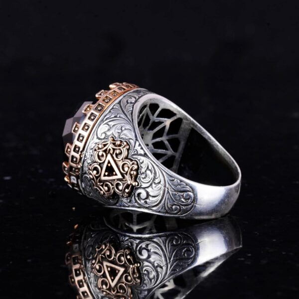 925 Ayar Gümüş Oluşturulmuş Oniks Kral Yüzüğü – Güç ve zarafetin muhteşem bir birleşimi olan bu yüzük, 925 ayar gümüşten yapılmış olup dikkat çekici bir Oluşturulmuş Oniks taşına sahiptir.