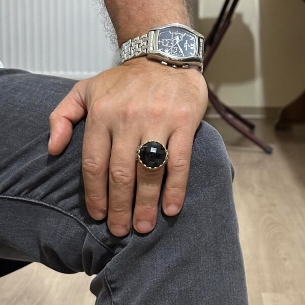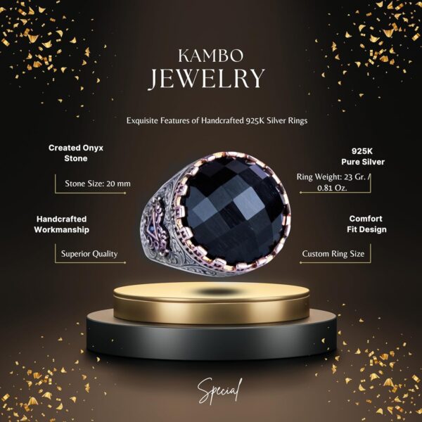 925 Ayar Gümüş Yüzük – Kral Yüzüğü – Doğal Olmayan Taş Yüzük – El Yapımı Yüzük Erkekler için (Oluşturulmuş oniks)
