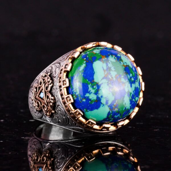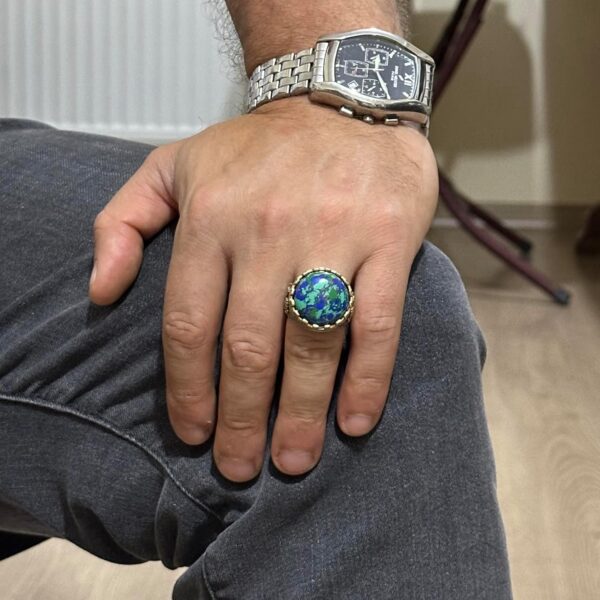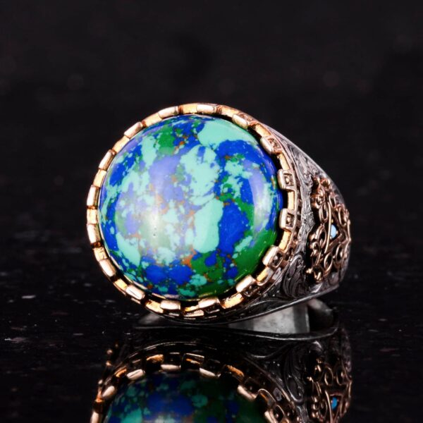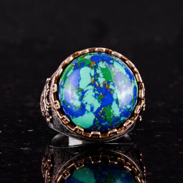 925 Ayar Gümüş Yüzük – Kral Yüzüğü – Oluşturulmuş Taş Yüzük – El Yapımı Yüzük Erkekler İçin (Oluşturulmuş Krysokolla)