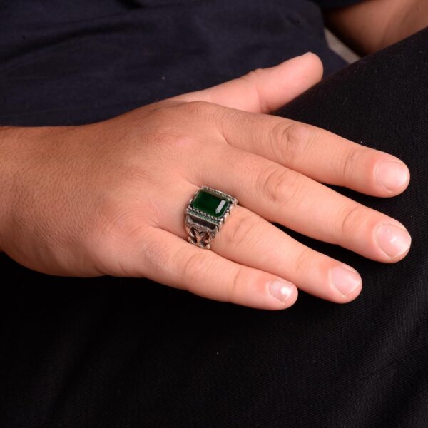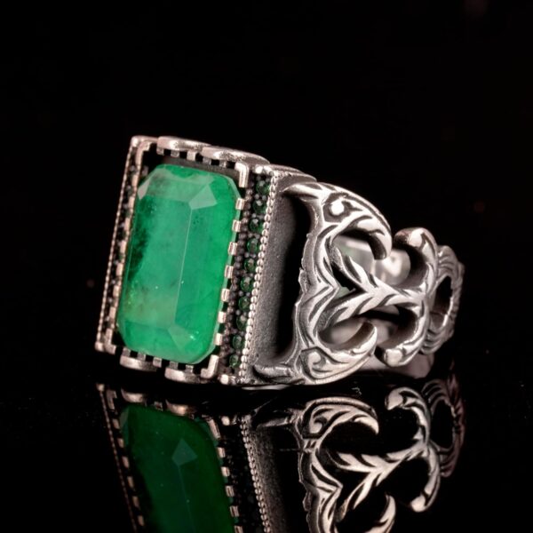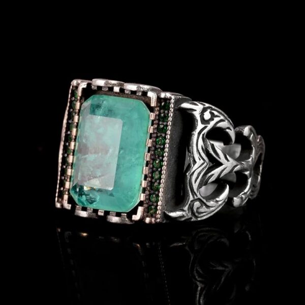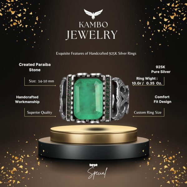 Yapılmış Paraiba Taşı Gümüş Yüzük, 925K Ayar Gümüş Yüzük, Erkekler İçin Eşsiz Gümüş Yüzük Ağırlık: 10.46gr